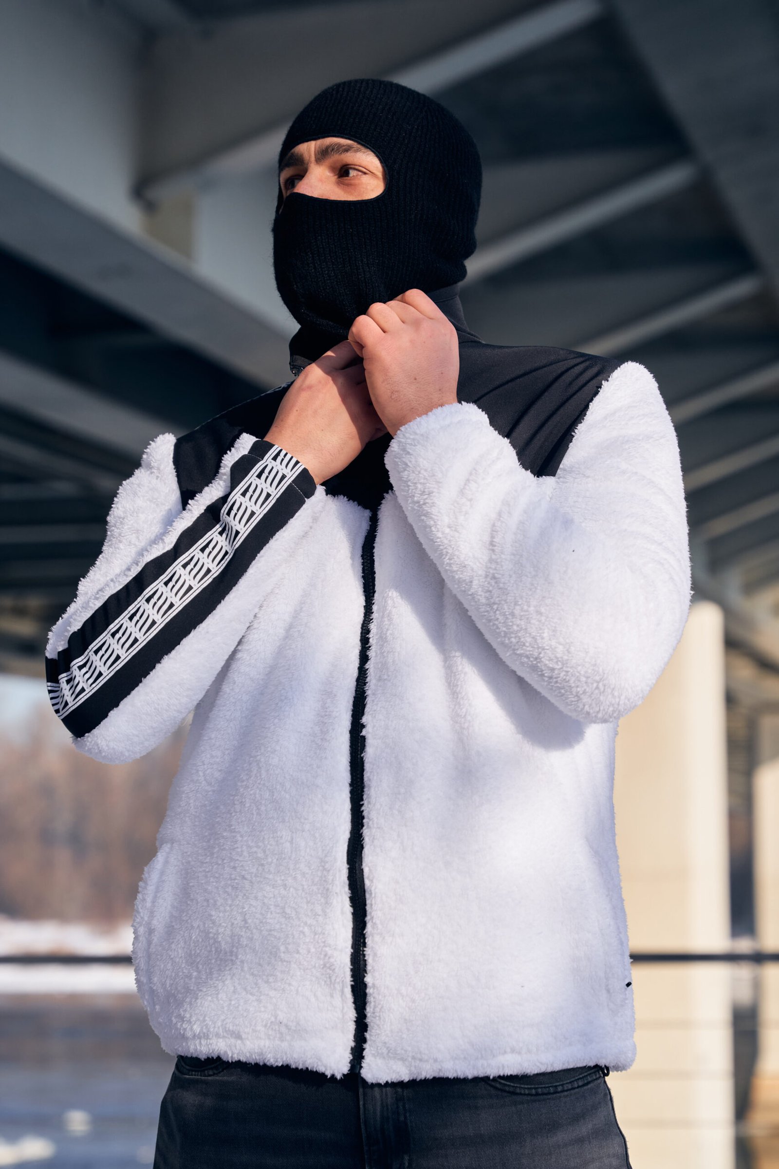 360 Arctic to ciepła bluzo-kurtka ze stójką na suwak. Połączenie grubego materiału polarowego ze wstawkami w barkach oraz na rękawie, wykonane z softshellu. Na plecach emblemat 360 SNOW TECH, wykonany haftem. Na piersi logotyp 360 ATHLETIC, gumowa naszywka PCV. Dwie kieszenie na suwaki, lampas wzdłuż prawego rękawa, taśma żakardowa MR CREW. Regulowany ściągacz w pasie. Biała podszewka oddychająca.