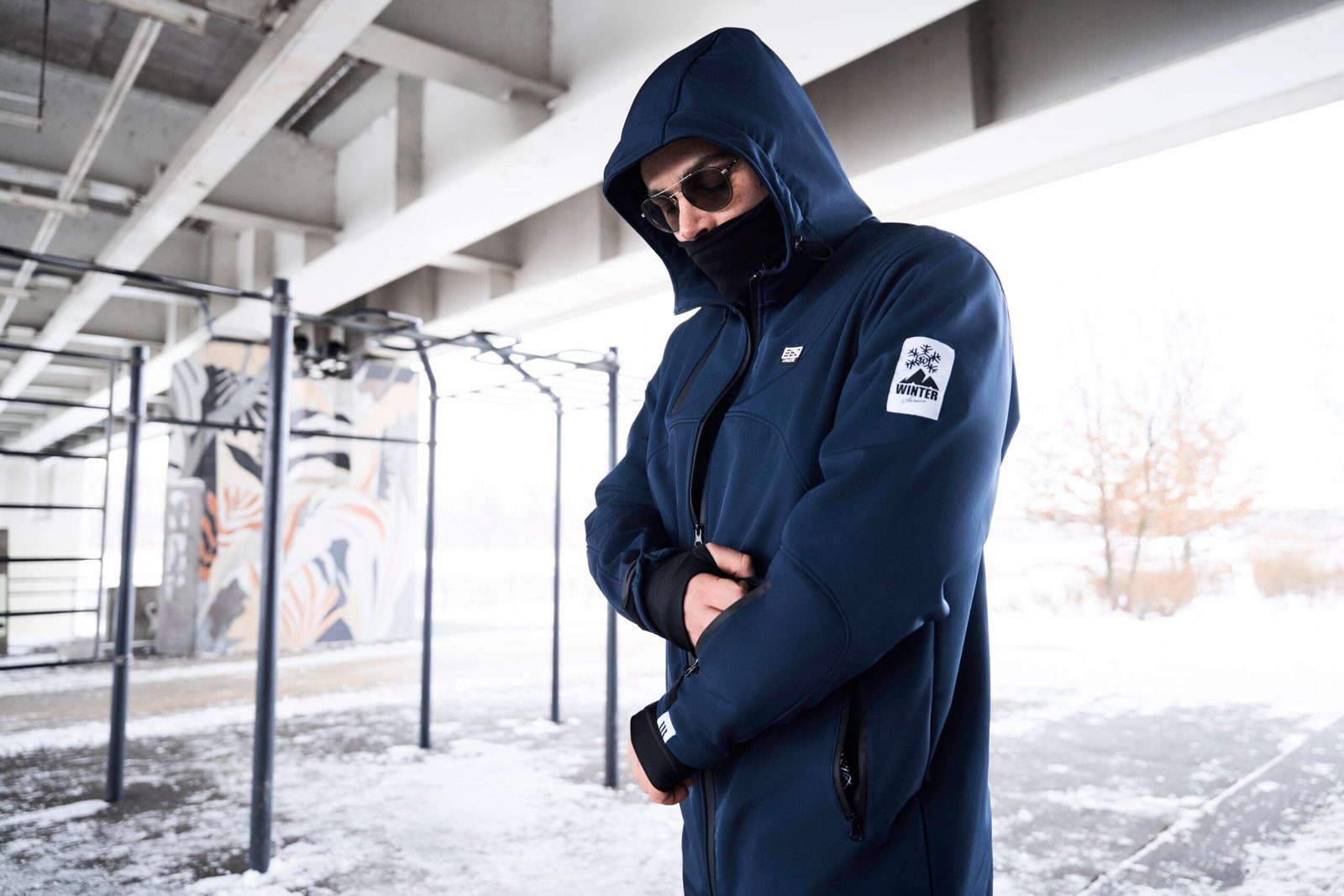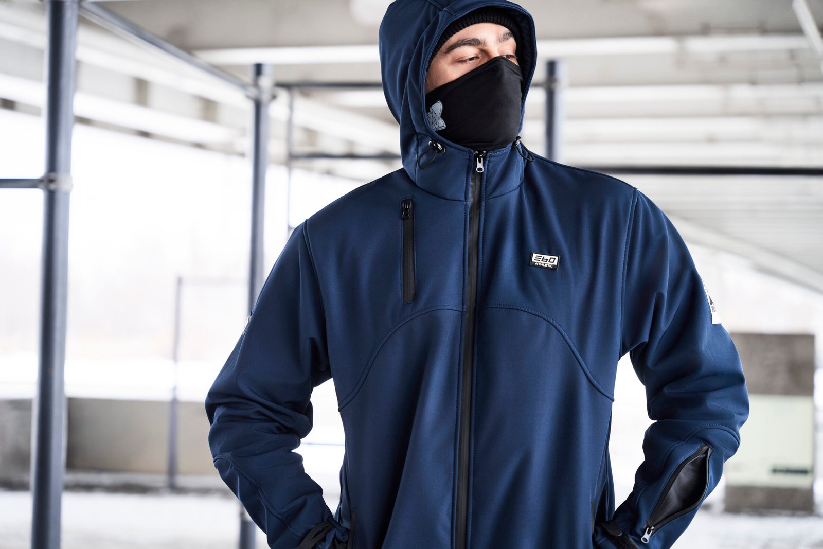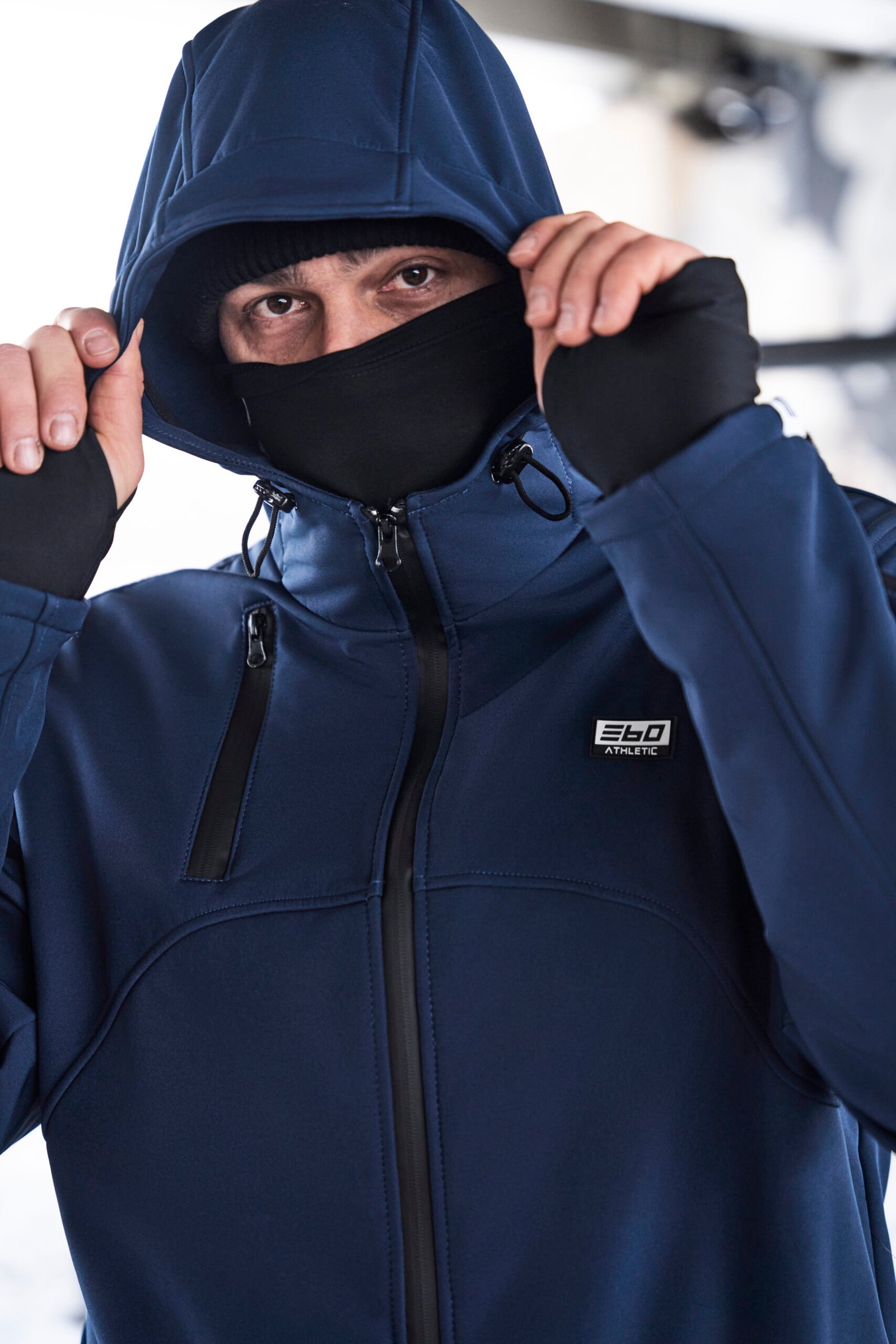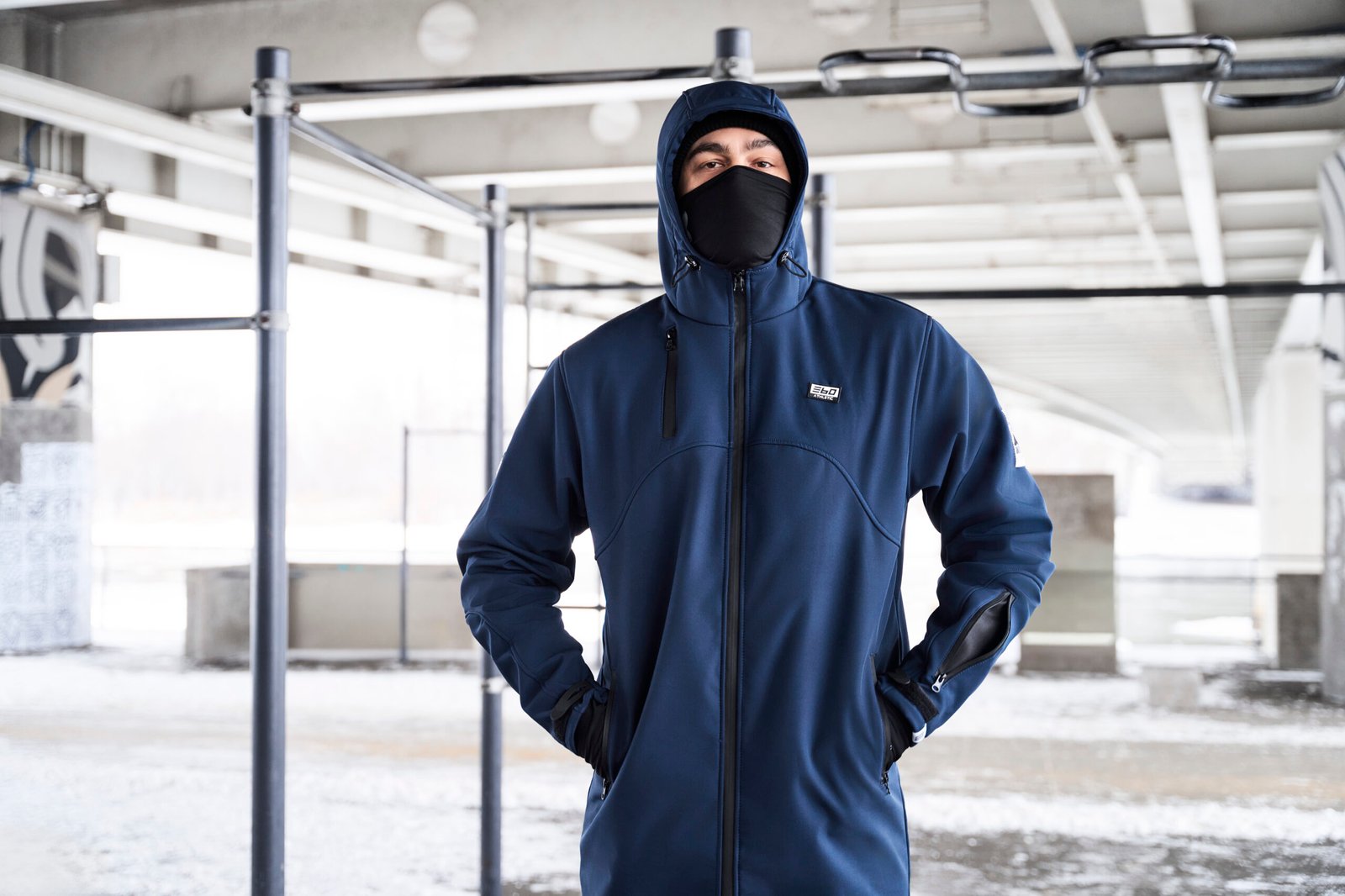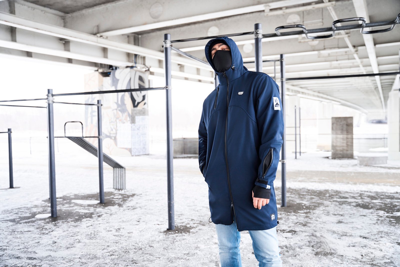 Regulowany kaptur oraz rzepy w nadgarstku. Dodatkowe pół-rękawice w rękawach.